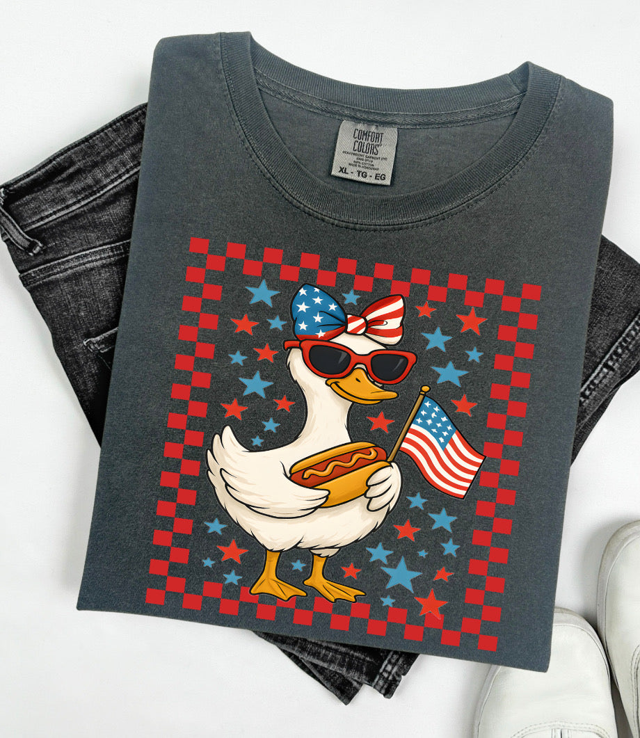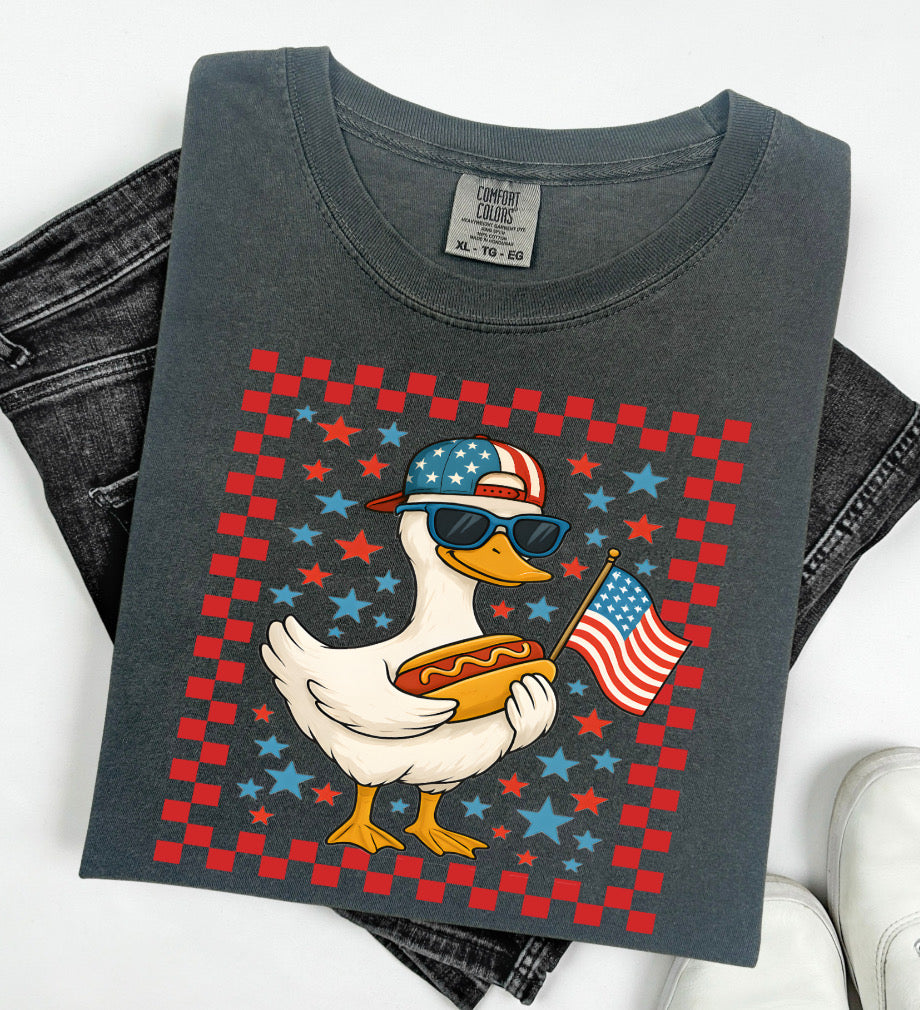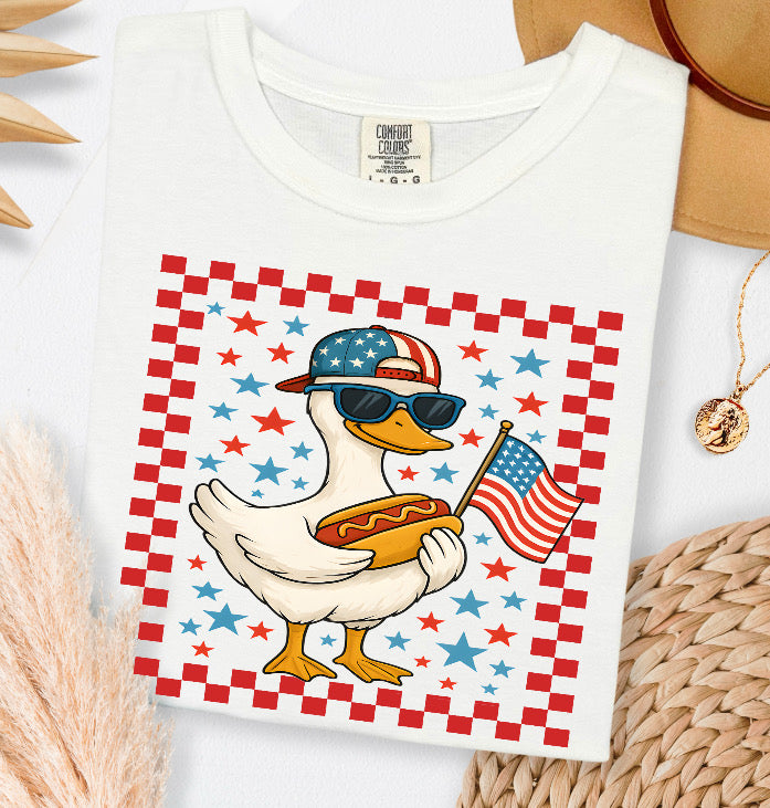 Get your little one ready for the 4th of July with this playful youth T-shirt. Perfect for a day of celebration and fun! (Hot dogs not included. 😉)